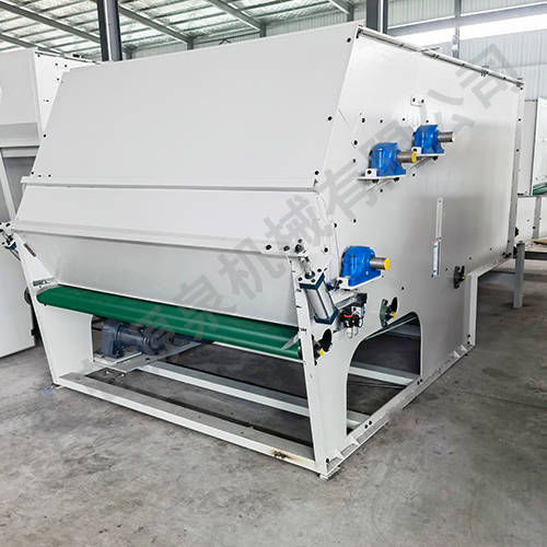 把各種捆包纖維、原料經電子稱重后,喂入平簾輸送至主體混倉內,再由三道開松輥高速開松混合后,經輸棉風機以適量的風量輸送纖維原料供后道工作使用。經本機開松混合后的纖維、原料效果好,混合均勻,以備梳理使用。