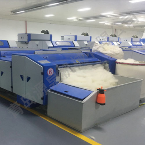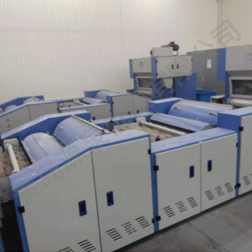 本機主要對山羊絨、綿羊絨、牦牛絨、駝絨、羊駝毛等動物纖維進行開松、梳理。 采用雙給棉板、雙刺輥、雙錫林、雙道夫的梳理排列,節省設備擺放空間,使其去粗、去雜、去皮屑的效果最大化,是分梳生產線中必備產品之一。