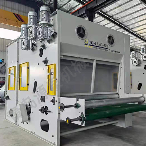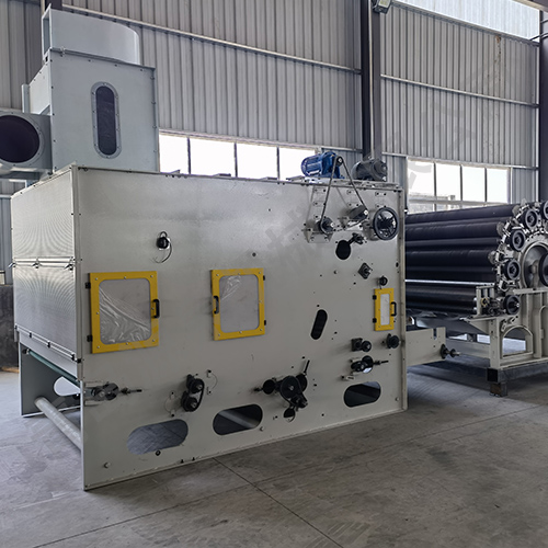這臺機(jī)器用于將纖維(開松和混合后)輸送到梳理機(jī)進(jìn)行下一道工序。采用容積式定量振動喂入,光電控制,與主開松光電聯(lián)動,給棉量更加均勻準(zhǔn)確。