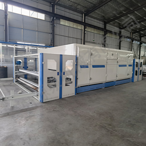 通過本機作用可生產無膠棉、仿絲棉等,產品廣泛應用于服裝、繡品、床上用品、家私、旅游產品等。該機器可采用1臺燃燒器加熱或電加熱,循環風機將熱風經風道穿透對流,上吹下吸,從而達到最大節能效果,而且三層網帶單獨傳動,各主傳動采用變頻控制。(可根據客戶需求定制)